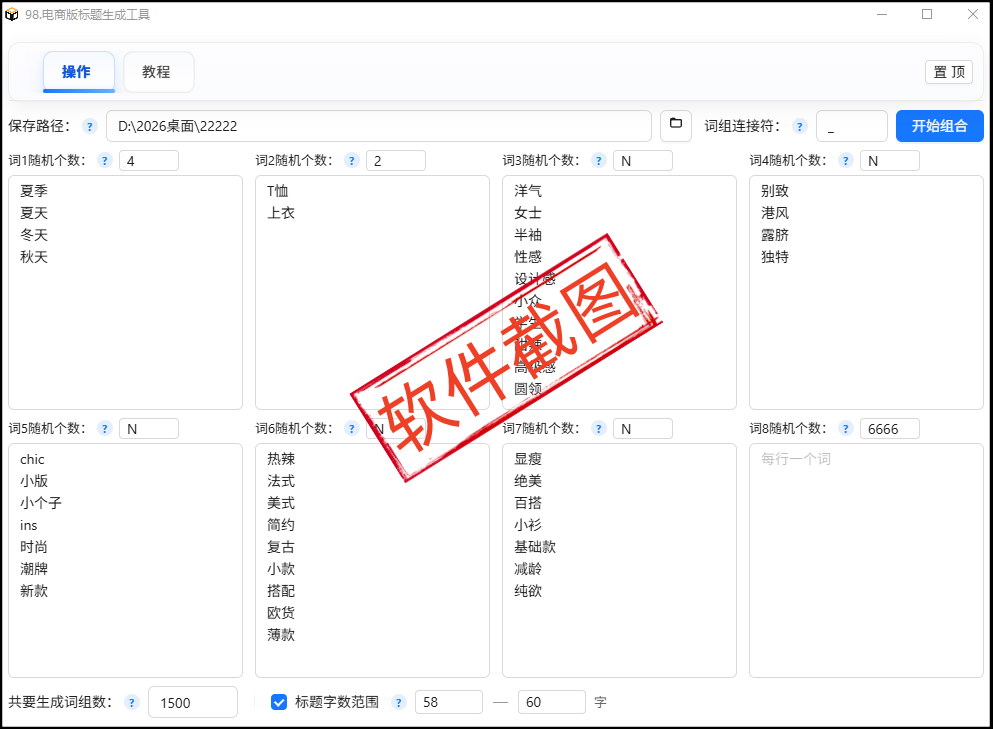 本文这款电商版随机组合工具适合电商标题生成。
