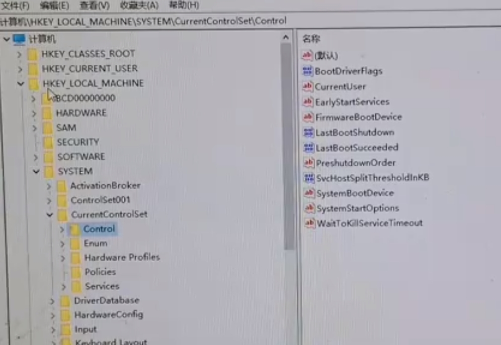 HKEY_LOCAL_MACHINE SYSTEM CurrentControlSet Control路径。 - 新建项:在