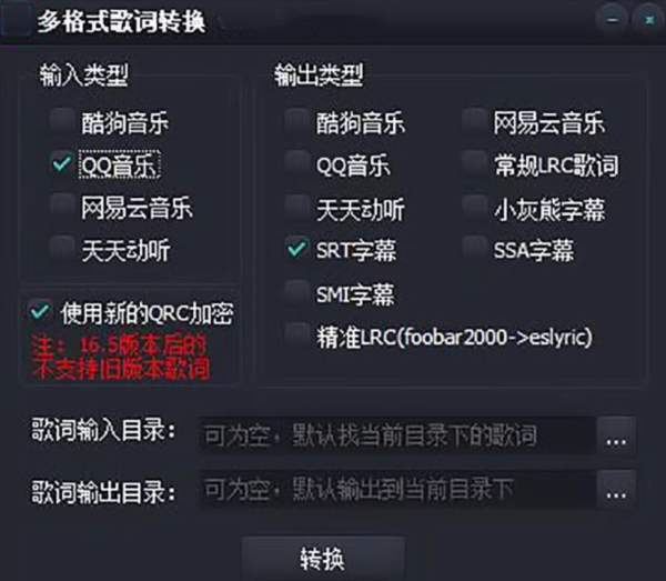 酷狗 QQ音乐 网易云天天动听歌词qrc krc trc格式转换Lrc srt格式