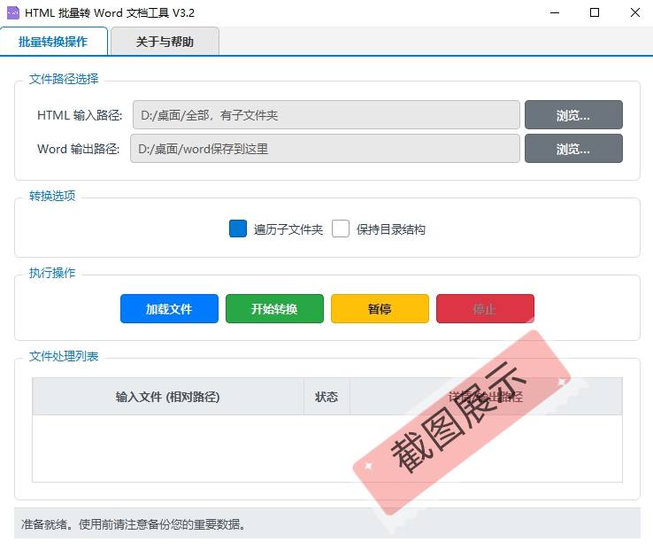 软件功能介绍:可以把本地html文件,一键批量转换为word文档。