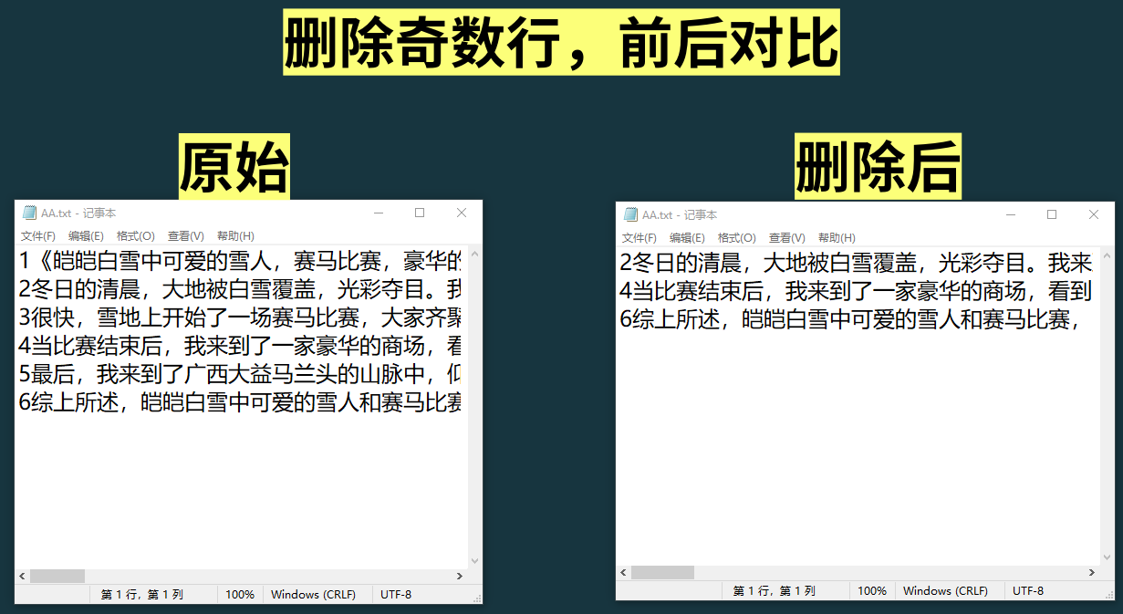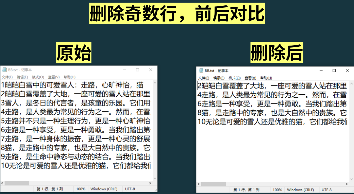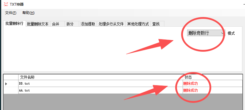 【txt删除奇数行】功能介绍:这是txt神器其中一个功能,一键导入txt文档,批量删除所有的奇数行,比如第1行、第3行、第5行,以此类推。