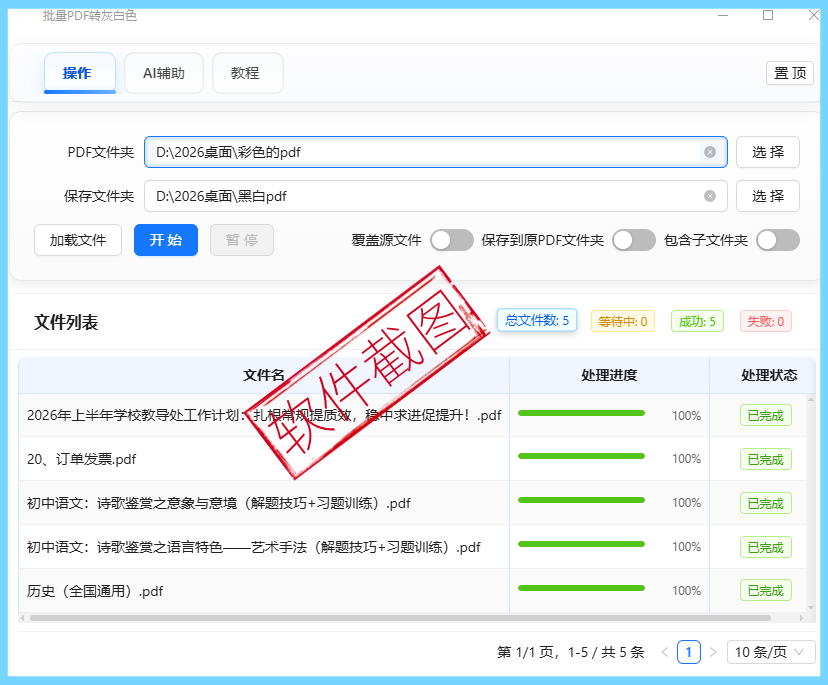 核心功能:一键批量将彩色 PDF 转为灰度 PDF,适配打印省墨、归档统一、提交材料等场景